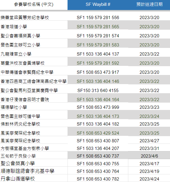 器材數量會按照早前大會收到的「借用器才申請表」內容分發到各參賽學校